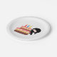 Kleines Ninja hinter Geburtstags-Kuchen Pappteller