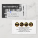 Die Abdeckung zeichnet sich durch eine Leckrohrkonstruktion aus. An der oberen Ecke befindet sich der Firmenname "PLUMBER SERVICE", den Sie ändern können. Ihr Prestigename wird senkrecht auf der rechten Seite mit den Kontaktdaten in der Nähe des Stützpunktes gehalten. Auf der Rückseite, in einem weißen Cover, oben ist ein goldenes Installations-Werkzeug-Symbol Logo, das Sie verwenden können. Die Symbole können einige der Dienste darstellen, die Sie anbieten. Danach folgen Ihr Name, die Kontaktdaten und ein Slogan, den Sie ändern können. Ein kreatives Design für Klempner.