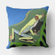 Dieses farbenfrohe Kissen zeichnet sich durch mein einfaches Design eines grünen Baumfrosches auf einem Dschungelblatt gegen den hellblauen Himmel aus. Ideal, um ein schlichtes Sofa oder einen Stuhl aufzuheitern und ein hübsches Geschenk für einen Froschliebhaber zu machen.