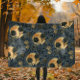 Ein atemberaubendes Himmelsmuster mit goldenen Monden und glänzenden, mondleichten Reben auf dunkelblau grauem Hintergrund