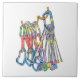 Dieses Design hat eine Illustration eines Felskletterregals, das ein Set von Treibköpfen und ein Set von Drähten / Steinen / Nüssen an einem Klettergurt hängt. Ein buntes Design für jeden, der Klettern Lieben hat.