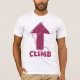 Eine Typografie, die das Wort klettern und ein Pfeilgemälde nach oben zeigt. Das Seil weht zwischen den Buchstaben des Wortes Klettern. Für alle, die Lieben Sport oder Klettern.