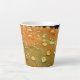 Das Kunstwerk auf dieser kleinen Latte-Tasse ist ein Originalfoto von ZoeSPEAK aus Regentropfen auf einer Manilla-Palmfront. Die rostorangefarbene Fronde ist gekrümmt und bietet uns einen Blick auf die orangefarbenen Wassertropfen von Rost aus verschiedenen Blickwinkeln. Oben in der Kurve sehen wir einen Horizont von Regentropfen vor dunklem Hintergrund. Während sich die Frondkurve dreht, haben die Tröpfchen helle Highlights und werden im Schatten gegenüber der Unterseite kleiner.