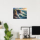 Die Felswand mit Blick auf den Ozean. Die Klippen harmonieren mit dem tiefblauen Meer. Wellen stürzen gegen die Klippe ab und erzeugen eine rhythmische Melodie. Es ist, als würde der Ozean durch seine starken Wellen eine Geschichte erzählen. Hänge dieses Plakat an deine Wand und fühle die Anwesenheit des Meeres in deinem Zimmer und bringe ein Stück Küsten-Schönheit in deinen Raum.