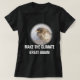 Foto eines nassen unglücklichen Spatzen. Text Machen Sie das Klima wieder großartig auf der Vorderseite. Der Text zur Sensibilisierung für den Klimawandel auf der Rückseite. T - Shirt von Frauen. Vollständig anpassbar. Sie können das Bild und den Text ändern oder löschen. Für dunkle und schwarze Produkte.