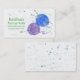 Eine lustige Visitenkarte, die mit blauen Garnbällchen geschmückt und lila mit Stricknadeln und einem bespitzten Hintergrund in Aquarellfarben gestaltet ist. Eine fröhliche Visitenkarte für einen Stricker, den Sie nach Ihren Wünschen anpassen können!