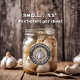 Große Skizze der Knoblauchzwiebel. Benutzerdefinierte Hintergrundfarbe. Vier Textfelder zum Anpassen.