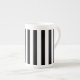 Diese charmante China-Tasse zeigt sich in einem niedlichen Schwarz-Weiß-Streifen-Printdesign. Passen Sie dieses Objekt an oder kaufen Sie, wie es ist.
