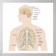 Knochen der menschlichen Brust, Brustknochen mit dem Namen und der Beschreibung aller Bereiche. Interne Sicht, Anatomie des Menschen, Skelettsystem für ein Arzneimittelposter