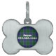 Großer schauender Haustier Identifikations-Umbau getan in einer Knochenform. Ein runder Bereich, mitten in dem Knochen, hat ein kariertes Muster des blauen und grünen Tartan, mit weißem Text. Personifizieren Sie den Text für Ihr Haustier.