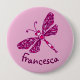 Schöne stilisierte Rosa Drachenfliege-Taste/Abzeichen. Personalisieren Sie mit Ihrem eigenen Namen, liest derzeit Francesca. Schmetterling mit Sarah Trett.