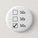 Eine Liste von Titeln mit Checkboxes. Das geschlechtsneutrale Titel MX hat ein Karokennzeichen im Kasten. Auch gelistet Herr und Frau, mit leeren Checkboxes auf. MX ist mit nicht-binären Leuten, wie agender, androgynischen und genderqueer Leuten populär.
