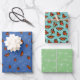 Diese lustigen Schmetterlingsmuster verpacken Papierblätter (3) mit farbigen Monarchschmetterlingen und ihren schwirren, blauen Flugbahnen; Monarchen in unterschiedlichen, auf einem weißen Doodle-Blume-Muster gemusterten Flugpositionen auf leicht aquamarin; und skurrile doodle-Blume Muster in weiß, gemustert über einen winzigen grünen Hintergrund - von katz_d_zynes