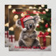 Dieses Bild bringt eine festliche australische Drehung, mit der Koala in einer Weihnachtsmannmütze inmitten von Weihnachtsgeschenken und einem sanften Buschglühen.