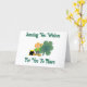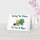 Ein niedlicher Kobold mit einem Goldtopf und einem großen Kleeblatt ist auf dieser St. Patrick's Day-Grußkarte abgebildet. Die Vorderseite der Karte enthält den Text "Ich sende Ihnen Wünsche, dass Sie" und die Innenseite der Karte enthält den Text "einen sehr glücklichen St. Patrick's Day und einen Tag voller irischer Segnungen" in grüner Schrift. Eine süße Karte, um sie Familie und Freunden zum irischen Feiertag zu schenken!