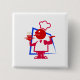 Der Koch ist ein Koch, der eine Suppe in der Hand hat und mit Freude begrüßt wird