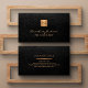 Luxuriöser, eleganter und mit Monogramm privater Koch mit einem vergoldeten Metallquadrat aus Kupfer auf einem eleganten, schwarzen Imitat-Lederhintergrund (DRINTED NOT REAL LEATHER). +++++++++++++ Eine minimalistische, moderne Visitenkarte für ein Restaurant, Catering, Bäcker, y oder Konditorei Koch oder für den privaten Party Koch.