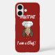 Koch Kopf mit Hut und rotem Halsbein. Benutzerdefinierte Hintergrundfarbe. Eigener Text.