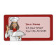 Cartoon Koch mit Hut, rotes Halsband, das Essen präsentiert.