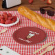 Koch Kopf mit Hut, rotes Halsbein und individueller Text.