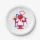 Der Koch ist ein Koch, der eine Suppe in der Hand hat und mit Freude begrüßt wird
