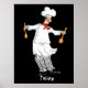 Eine skurrile Aquarellansicht eines Koch, der auf den Schlag kommt.