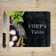 Mit Kräutern, Kräutern und Zwiebeln dekoriert. Schwarze rustikale Leinwand als Hintergrund Text: Koch-Tabelle