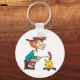 Ein Mann kocht auf einem Lagerfeuer. Dieses Design wirkt auf diesem Schlüsselanhänger wirklich effektiv