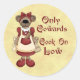 "Nur Cowards Cook on Low!" Funny Sprichwort für Hobby Köche oder Köche von Beruf. Extravagante Wortart und eine niedliche Bärenmutter, die ein rotes Kleid mit einer Schürze trägt und die Werkzeuge ihres Handwerks trägt. Ein humorvolles Design für Ihren Lieblingskoch!