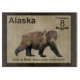 Eine weitere in der Serie der Porto-Briefmarke für eine hypothetische unabhängige Nation von Alaska. Ein digitales Gemälde eines Kodiak Bären auf einem neutralen Pergament, oder altes Papier, Hintergrund. Es erscheint auch das Textlesen "Alaska", "Postage 8 Nuggets" und "Kodiak Bear Ursus arctos middendorffi". Sie können eine Hintergrundfarbe auswählen oder transparent verlassen. Der Kodiak-Bär (Ursus arctos middendorffi), eine Unterart des Braunen oder Grizzly, ist der größte Bär der Welt. Ein vollgewachsenes Männchen kann über 1,50 m hoch sein, wenn es aufrecht auf seinen Hinterbeinen steht und über 1500 Pfund wiegt - ein wahrer Anblick. Ein Bär im Bismarck, der Zoo von Nord-Dakota, hat schätzungsweise bis zu 2400 Pfund gewogen. Die Bären leben auf den Inseln des Kodiak-Archipels von Alaska. Heute gibt es ca. 3500 Kodiak-Bären und ihre Anzahl steigt aufgrund der im Allgemeinen ausgezeichneten Lebensbedingungen, inklusive ausreichend Faust zum Essen. Sie werden in Alutiiq "takuka-aq" genannt, der Sprache der Einwohner dieser Gegend. Man glaubt, dass die Bären dort seit gegen Ende der letzten Eiszeit vor über 12.000 Jahren abgeschieden waren. Obwohl sie die größten terrestrischen Fleischfresser sind, umfasst ihre Ernährung große Mengen von Gras, anderen Pflanze und Beeren. Heute gibt es etwa 3500 Kodiakbären, deren Anzahl aufgrund des allgemein ausgezeichneten Zustands ihres Lebensraums, einschließlich ausreichender Fische zum Essen, zunimmt. Aufgrund des Überflusses an Nahrungsmitteln haben Kodiak-Bären kleinere Zuhause-Reichweiten als alle anderen Braunbären und brauchen keine Gebiete zu verteidigen. Die Alutiiq jagen Bären für Nahrung, Kleidung und Werkzeuge. Pfeile, Speere und viel Mut waren notwendig für die Jagd. Bärenköpfe wurden in der Regel auf dem Feld als Zeichen des Respekts vor dem Geist der Bären links.