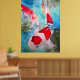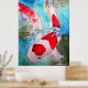 Mit einem Design aus einem original Aquarellmalerwerk der australischen Künstlerin Sacha Grossel von zwei Kohaku rot-weiß Koi Zierfische japanische Fische schwimmen in einem coolen, aquamarinischen Teich mit Wassereffekten. Dieses bunte und lebendige Kunstposter wird von japanischer und asiatischer Kunst inspiriert und ist für Fische oder Koi Liebhaber überall.