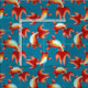 Dekoratives Koi Fischmuster auf blauem Hintergrund. Beachte! Sie können die Kachelgrößen ändern, um die Größe des gewünschten zeichnend anzupassen, indem Sie auf die Schaltfläche "Anpassen!" klicken.