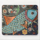 Beautiful koi fish with mosaic pattern bursting with color to brighten up your day and bring good fortune your way. The koi is a pretty blue and the background is a mix of black and dark blue with starfish and jellyfish. Design created by Black Brook Photography with graphic from Pixabay September 2014.