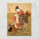 Eine japanische Frau fährt während des Lesens von Briefen auf einem Riesenkoi.