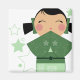 Kokeshi Puppe mit einem grünen Kimono mit Sterndetails.