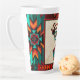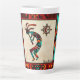 C'est un "One of a Kind" unique Mug en latte Kokopelli Sud-Ouest! Il comprend un Kokopelli sud-ouest jouant la Flûte et dansant sous le soleil sur un Arrière - plan de grès...Entouré d'une frontière sud-ouest en Turquoise, Orange & Noir! Design D'Art Original Par L'Artiste Kerry Miller.