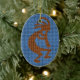 Dieses einzigartige Weihnachtsschmuck besticht durch eine traditionelle amerikanische Indianerin Kokopelli mit Flöte. Die braune Kokopelli sticht vor einem blauen Hintergrund hervor, der beide ein Mosaik- oder Fliesenmuster aufweist. Das Kokopelli ist ein typisch amerikanisches Folkloredesign und wird von Musikliebhabern und Musiklehrern geschätzt.