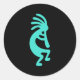 Türkis Kokopelli Silhouette vor einem schwarzen Hintergrund.