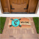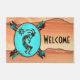 Personalisieren Sie diese einzigartige "Eine von einer Art" Südwest Kokopelli Doormat! Es verfügt über einen Kokopelli, der Flute und Tanzen unter der Sonne auf einem türkisfarbenen Hintergrund spielt, umgeben von einer Südwestgrenze in Türkis, Orange und Schwarz Flammen...auf einem Wüstenhintergrund! Das ist ein originelles Kunstdesign des Künstlers Kerry Miller.