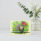 Diese Künstler-Trading Card kennzeichnet einen jungen Rubin-throated Kolibri, der nicht noch die karminrote Färbung auf seiner Kehle entwickelt hat. Er sitzt auf einem MetallBar, vorbereitet, um in den Nektar von den Blumen zu tauchen, die ihn umgeben. Der Hintergrund ist eine weiche, reizende Palette von rosa, von Rotem, Gold, Gelb und Grün.