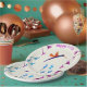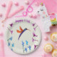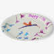 PapierTeller mit einem Kolibri, der frei zwischen Blumen fliegt. Groß für einen Meilensteingeburtstag oder -jahrestag, wird der Text leicht für Ihre Gelegenheit besonders angefertigt. Dieser Blumenkolibri-Teller war unter Verwendung einer Illustration von meiner Glasmalerei des ursprünglichen Vogels entworfen. ©Annabel Töpfer