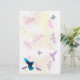 Empfindliche Pastelle bilden den Hintergrund dieses Briefpapiers, mit Kolibris, Schmetterlingen und Libellen im Vordergrund. Ein glänzender blauer Kolibri in der unteren links Ecke stellt Ihre Unterschrift gegenüber.