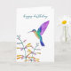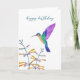Geburtstagskarte mit einem handgemalten Kolibri und Blumen. Die Innenseite ist leer für Ihre eigene handgeschriebene Nachricht.