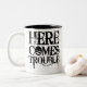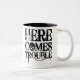 Kommt hier Problem:: Herrlich, Spaß und grungy unser kommt hier Problemeigenschaften eine Vintage beunruhigte Felsen-Typografie und ein wilder kleiner Emoticon in der Mitte. Unser kommt hier Problementwurf ist voll von der schlechten Mädchenhaltung und von fun.com
