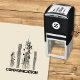 Silhouetten von Kommunikationstürmen mit benutzerdefiniertem Text.