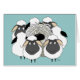 Grußkarte, die einen entzückenden, shaggy Komondor Hund herein mischt mit seiner Menge der Schafe zeigt. Titel auf der Grußkarte liest, "vermisstes Mutterschaf!". Hintergrund wird als aquamarine Farbe angezeigt, aber er und der Schriftart und die Phrase können zu leicht besonders angefertigt werden, was auch immer Sie möchten.