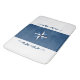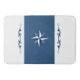 Ein blaues vertikales Banner mit einem zentralen Kompass, flankiert von symmetrischen, dekorativen Schnörkeln auf beiden Seiten. Das Design verbindet geometrische Formen mit komplizierten, kurvigen Mustern für eine nautische Komposition.