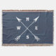 Kompassbild mit Pfeilen und Nord, Ost, Süd, West-Dekoration auf blauem Grunge Hintergrund