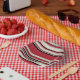 Komplexe Streifen - rot, grau, schwarz und knochen Pappteller