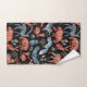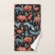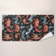 Illustrierte Waldtiere in Rot und Blau, darunter Füchse, Bären, Eulen und Hirsche, sind mit komplizierten Mustern auf schwarzem Hintergrund verziert.